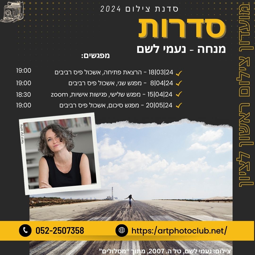 למפגש הבא אתם מוזמנים להגיע עם רעיון מגובש לסידרה +כמה תצלומי התחלה.